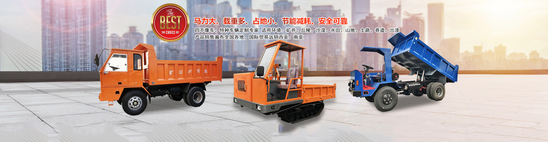 公司主要產品為履帶運輸車、四不像運輸車、農用運輸車、農用隨車挖掘機等各類工程運輸車,所有產品都通過ISO9001產品質量管理體系認證
